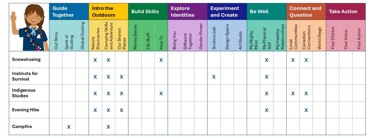 All fully serviced Outdoor Experiences have been strategically planned and connected to GGC's Program. Use the table below as a guide when looking at which program themes and areas are covered by activities at this Outdoor Experience.